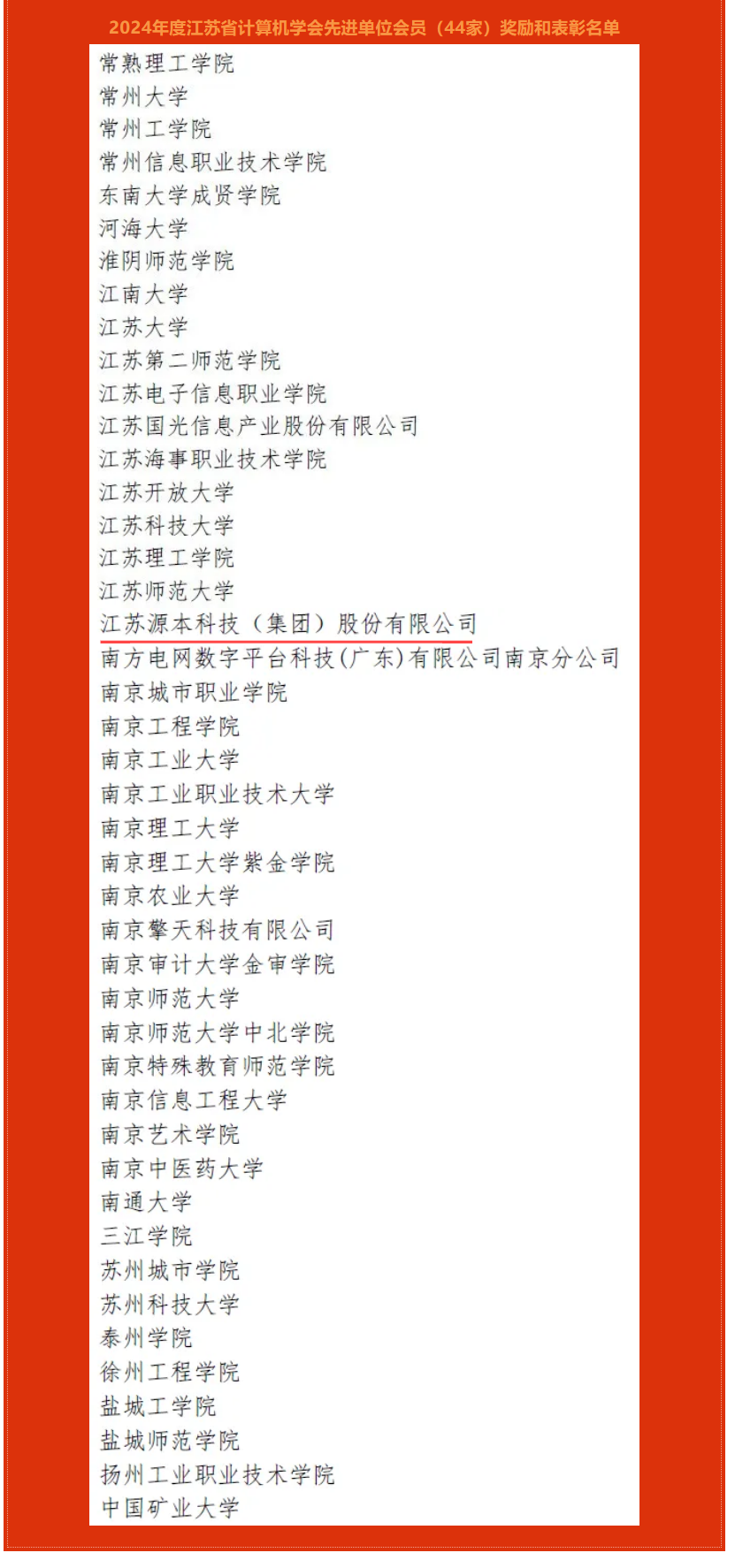 喜讯!热烈庆祝江苏南宫NG28科技(集团)股份有限公司荣获江苏省计算机学会2024年度先进单位会员